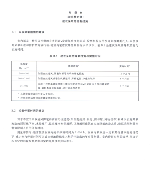 ——標準名稱改為《室內氡及其子體控制要求》。一將原標準中的“住房”改變為“室內”,使標準適用范圍有所擴大。但是明確了本標準只適用于室內氡及其子體所致公眾照射的控制。